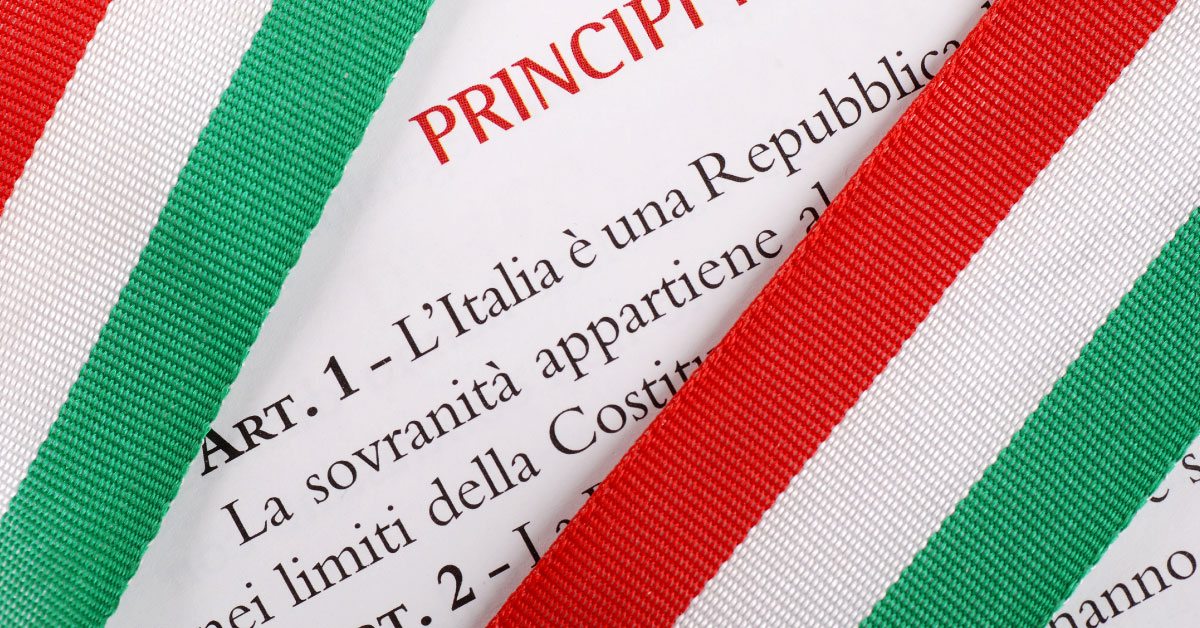 La Costituzione della Repubblica Italiana è la legge fondamentale dello Stato Italiano, che in quanto tale occupa il vertice della gerarchia delle fonti nell’ordinamento giuridico della Repubblica: considerata una costituzione scritta, rigida, lunga, votata, compromissoria, laica, democratica e tendenzialmente programmatica, è formata da 139 articoli e di 18 disposizioni transitorie e finali.