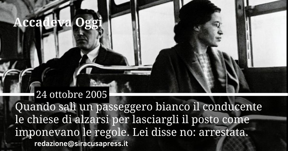 [/vc_column_text][vc_column_text]È il primo dicembre 1955 quando Rosa Parks, donna afroamericana di 42 anni, sarta di professione, rifiuta di cedere il suo posto a una donna bianca su un autobus a Montgomery, Alabama, come era uso durante gli anni della segregazione razziale. “Non ero fisicamente stanca, ero stanca di cedere”, scrisse nella sua autobiografia pubblicata nel 1992: quel rifiuto la trasformò nel giro di pochi giorni in un baluardo della lotta non violenta per i diritti civili dei neri afroamericani.